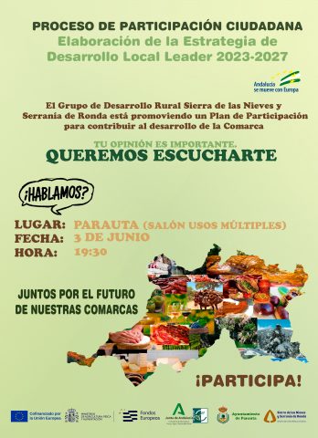 Desde el GDR Sierra de las Nieves y Serranía de Ronda se inicia el proceso de participación ciudadana para la elaboración de la Estrategia de Desarrollo Local Leader 2023-2027.