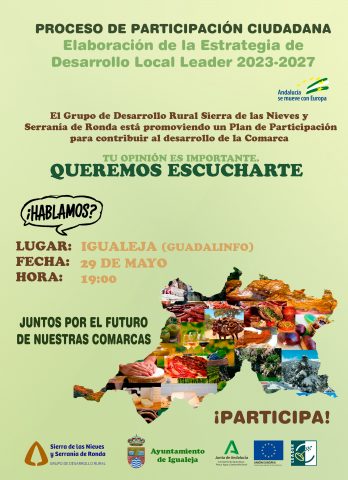 Desde el GDR Sierra de las Nieves y Serranía de Ronda se inicia el proceso de participación ciudadana para la elaboración de la Estrategia de Desarrollo Local Leader 2023-2027.