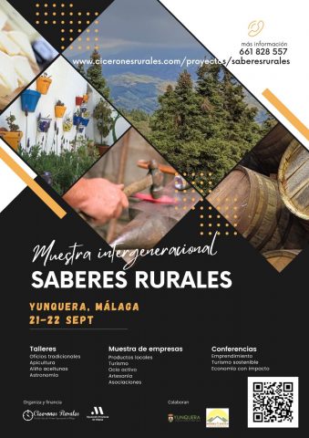 Desde Cicerones Rurales, con la financiación de las Ayudas al Tercer Sector de la Diputación de Málaga y con la colaboración del Ayuntamiento de Yunquera y La Noria, Centro de Innovación Social, organizamos la Muestra Intergeneracional Saberes Rurales.